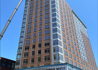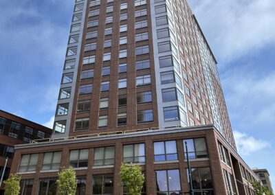 The tallest building in Maine a 201 foot tall residential building renamed, The Casco is located on Federal Street in the heart of Portland. The facade consisted of a three story podium and 18 story tower made with the StoPanel Brick ci system and StoPanel Metal ci systems. The 330 panels were installed the fall of 2023 with a shared tower crane and erecting crew.