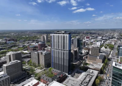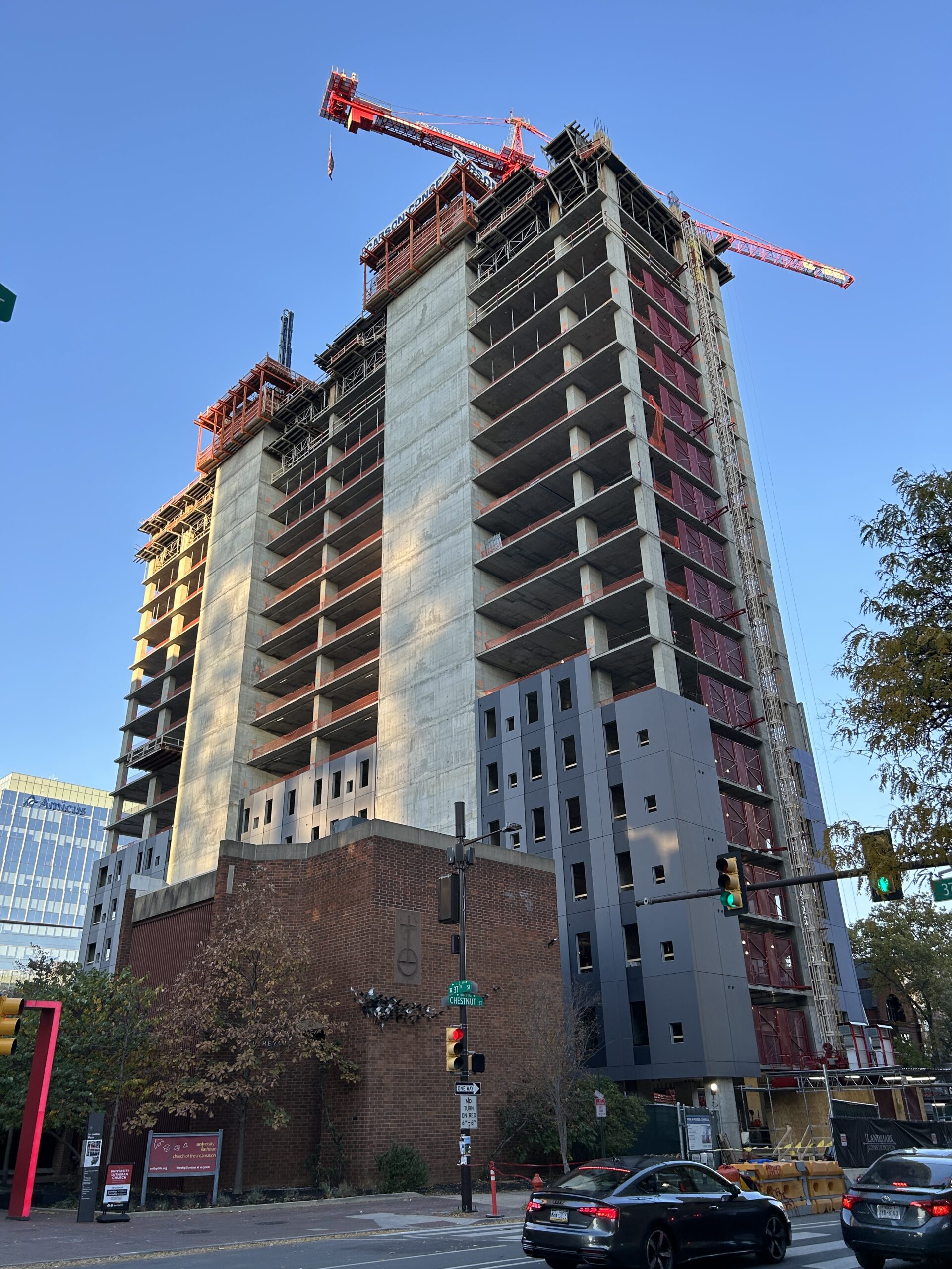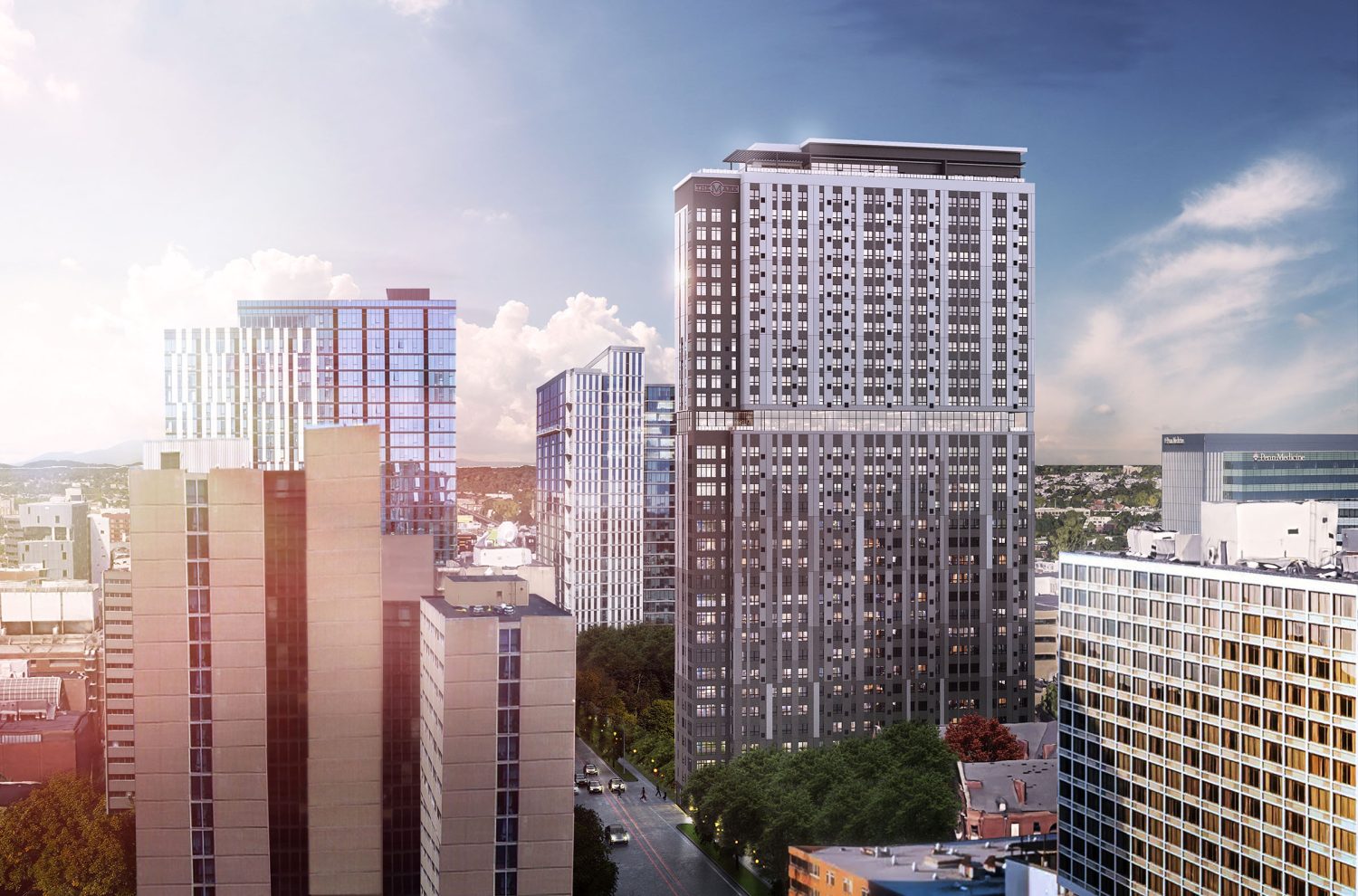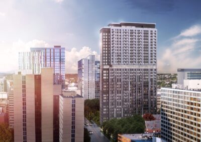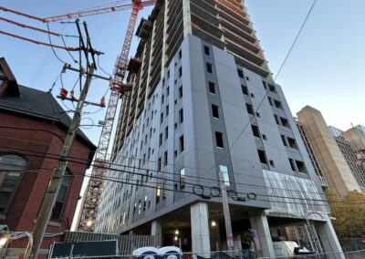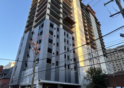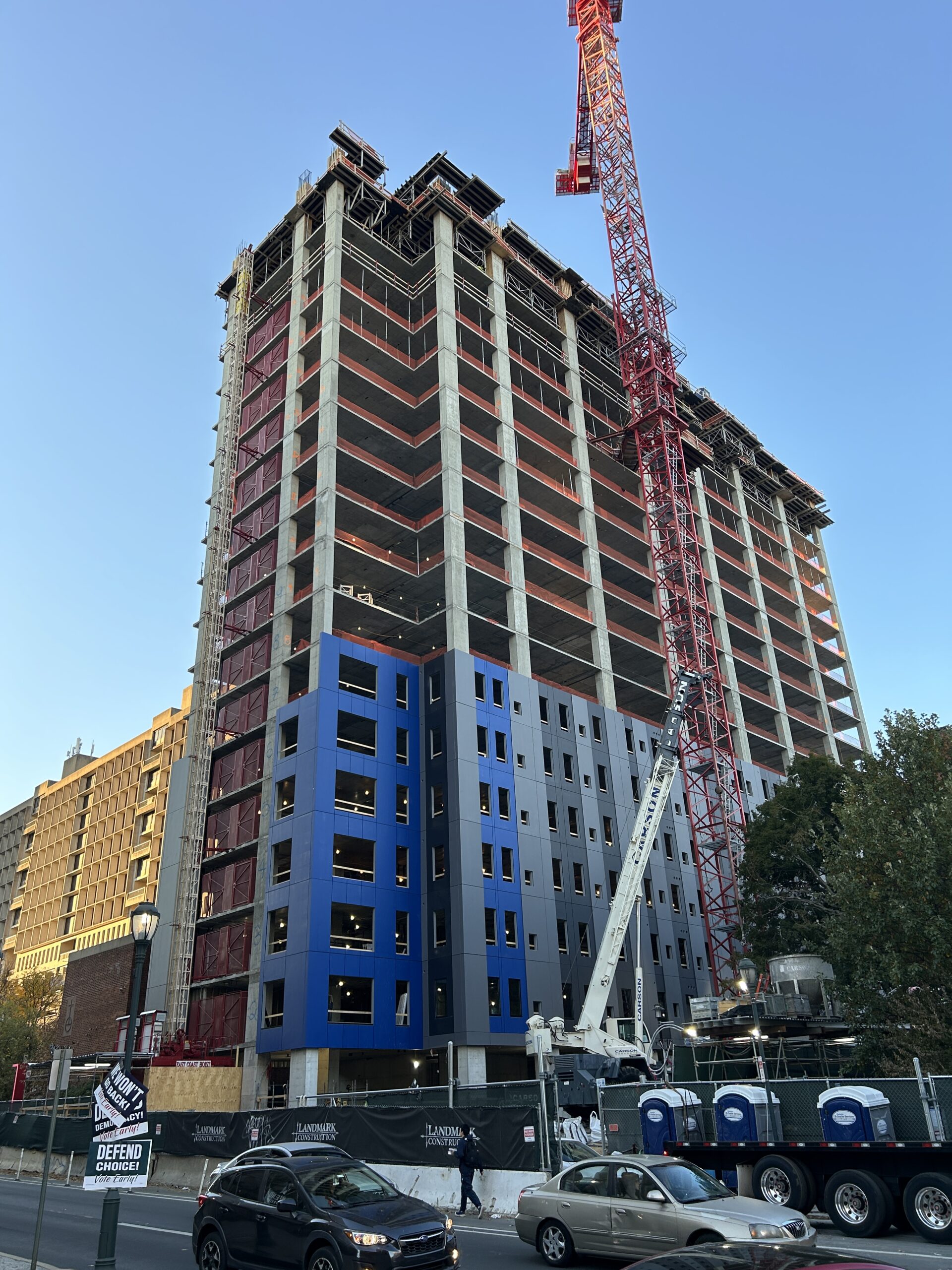 The Mark Philly is a high-end branded student housing apartment building located in west Philadelphia right between University of Pennsylvania and Drexel University on 37th and Chestnut streets. This project had a very tight jobsite with limited room for laydown of Sto Panels.  The team of Forge Co USA and Jersey Panel created a safe and productive process to rig and off-load an entire trailer bundle of panels with one pick and set it down on the jobsite for a second shift un-wrapping and panel installation.  The trailers of panels were unloaded in minutes after which the empty trailer left Chestnut street for minimal traffic interruption. If you have a tough jobsite and could benefit by shifting 80% of the labor and materials for the exterior wall off-site, we’d love to share with you our knowledge and be a service to your project.
